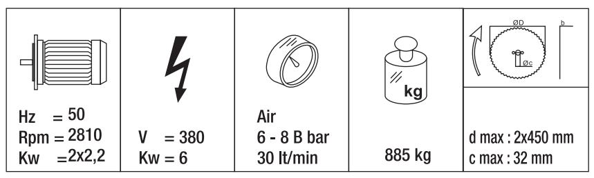 - Distancia de Salida de Sierra 165 mm en SIERRA Ø500MM y corte de perfil 80mmx2