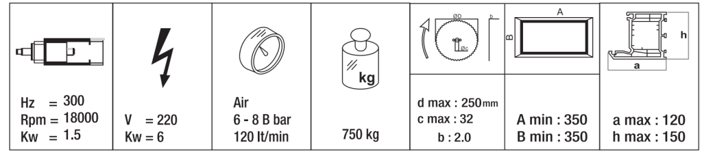 - Tiene una capacidad de procesamiento de marcos de 160-200 piezas en un período de trabajo de 8 horas.