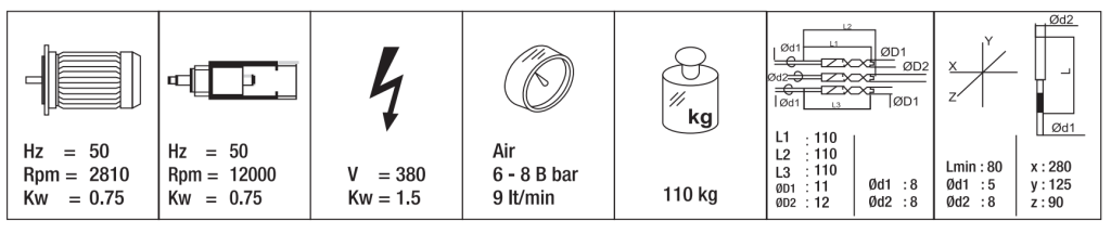 • Posibilidad de trabajar solo con sistema de copiado, fresado o ranurado de triple perforación.